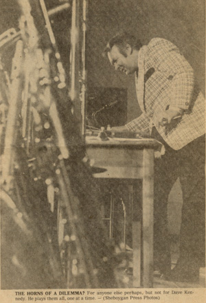 The 49 year old Kennedy, who heads the largest recording studio in Wisconsin, studied the violin and once had asperations of being a band leader. He landed a job with a dance band playing seven nights a week at the old Holiday House in Milwaukee and started taking the other musicians instruments along home so he could practice on them.