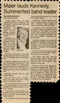 Maier lauds Kennedy Summerfest band leader Date: June 03, 1900 By: ANNE WAUKAU Of the: Sentinal Staff By ANNE WAUKAU |