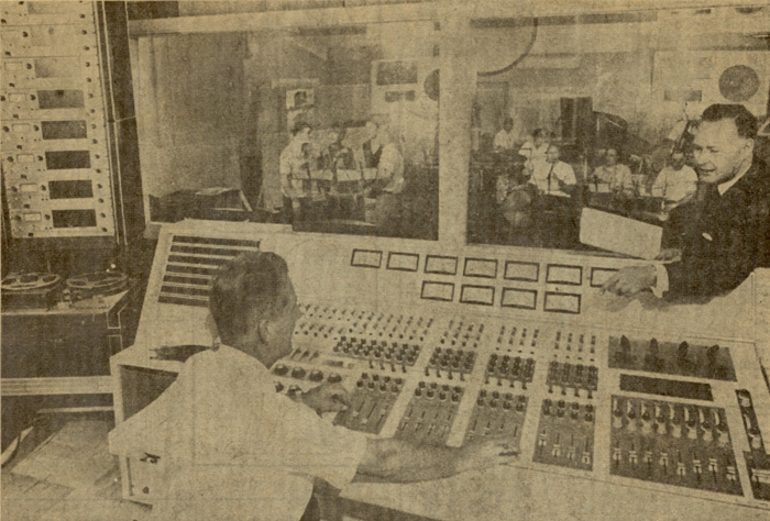 Versatile Kennedy plays all the instruments for a 45 piece orchestra and strings, recording the sounds in the Dave Kennedy Recording Studios, 2755 N. 3rd st. In three hours, Kennedy can record 23 instruments for a two minute recording of the pop tune "I remember You." He timed it. If Kennedy isn't the only 45 piece orchestra, he is the fastest. He records his one man orchesrta on his custom built eight channel Ampex tape recorder which, as he puts it, "gives me any sound I want -- later."